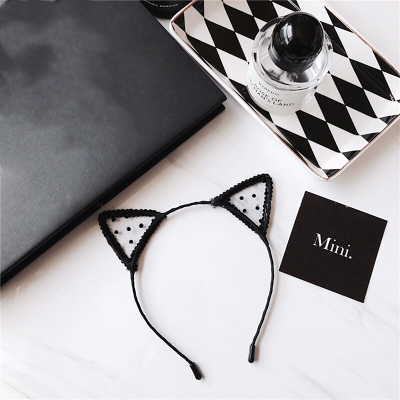 Black Cat Ears Head Bezel Fashion Lace Lady Girl Hairband Sexy Self Headband Baby Birthday Party Hair Hoop Hair Accessories