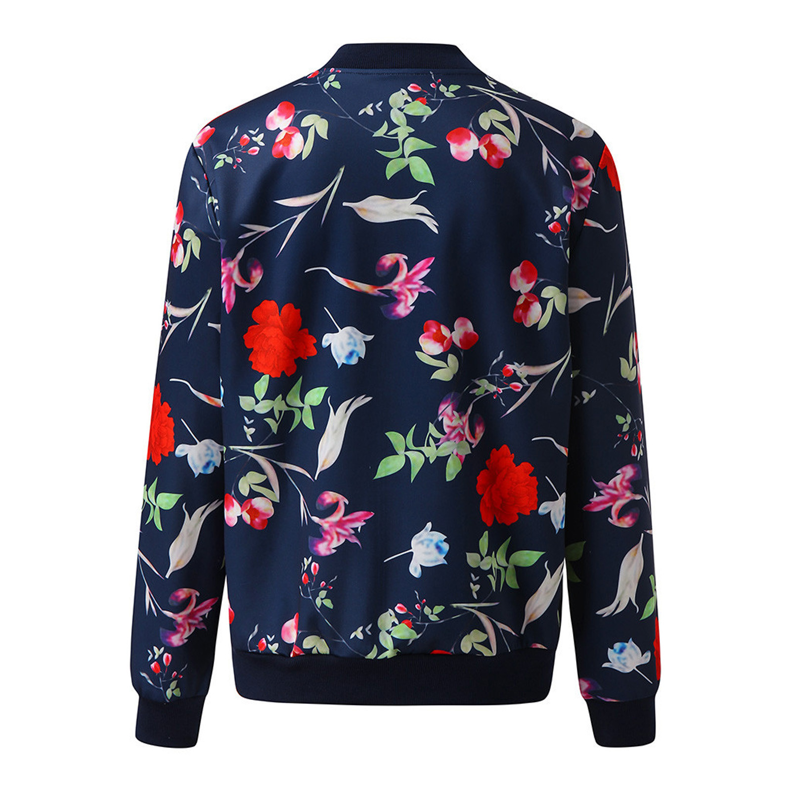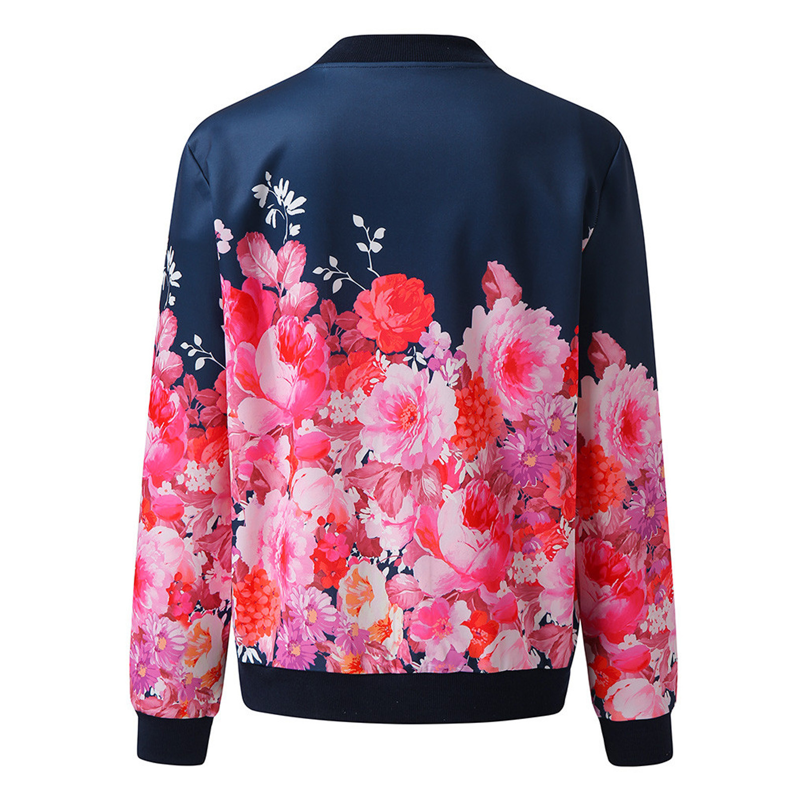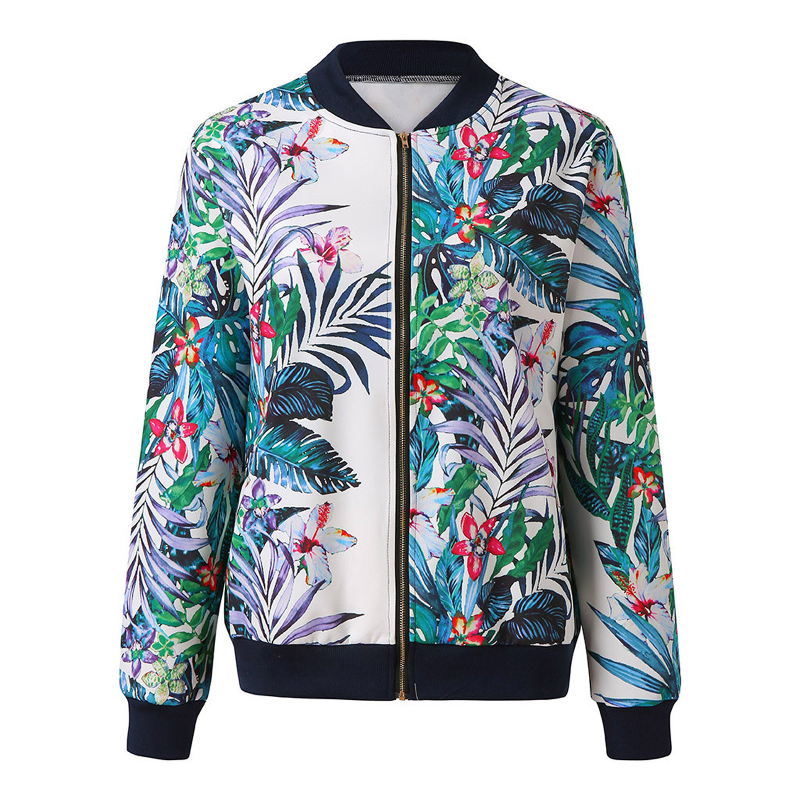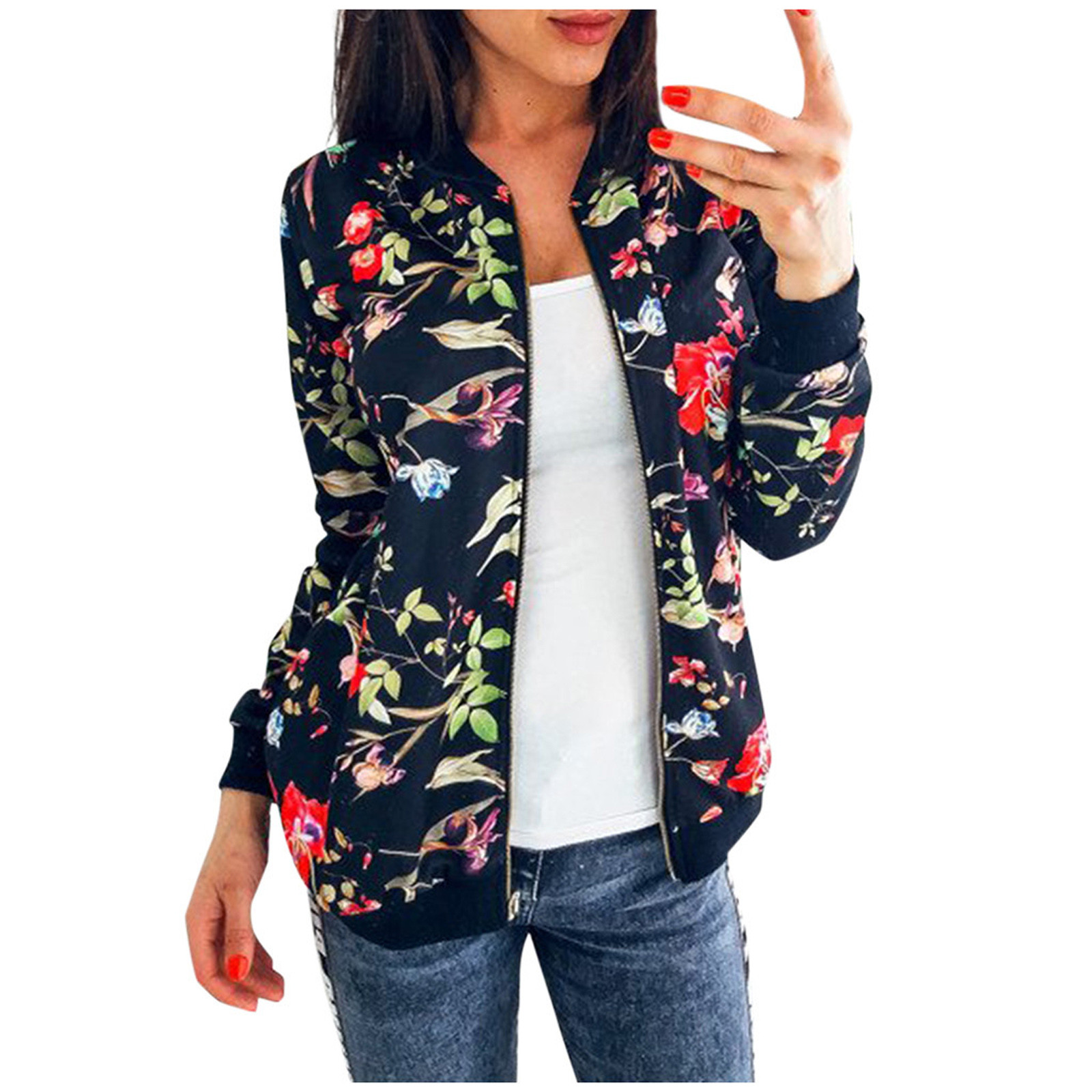 Womens Retro Floral Printing Zipper Up Jacket Casual Tops Coat Outwear