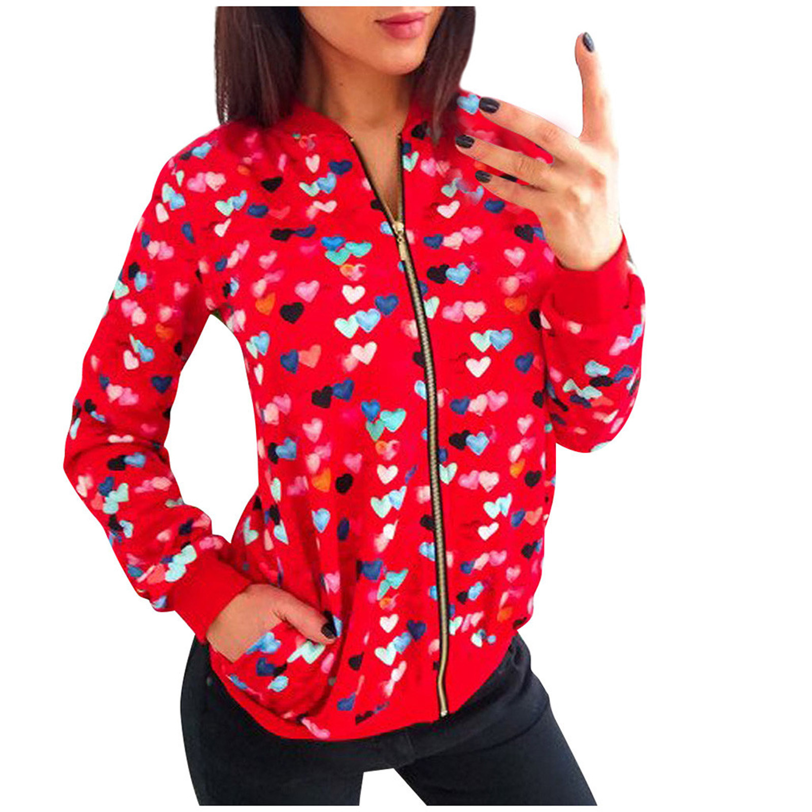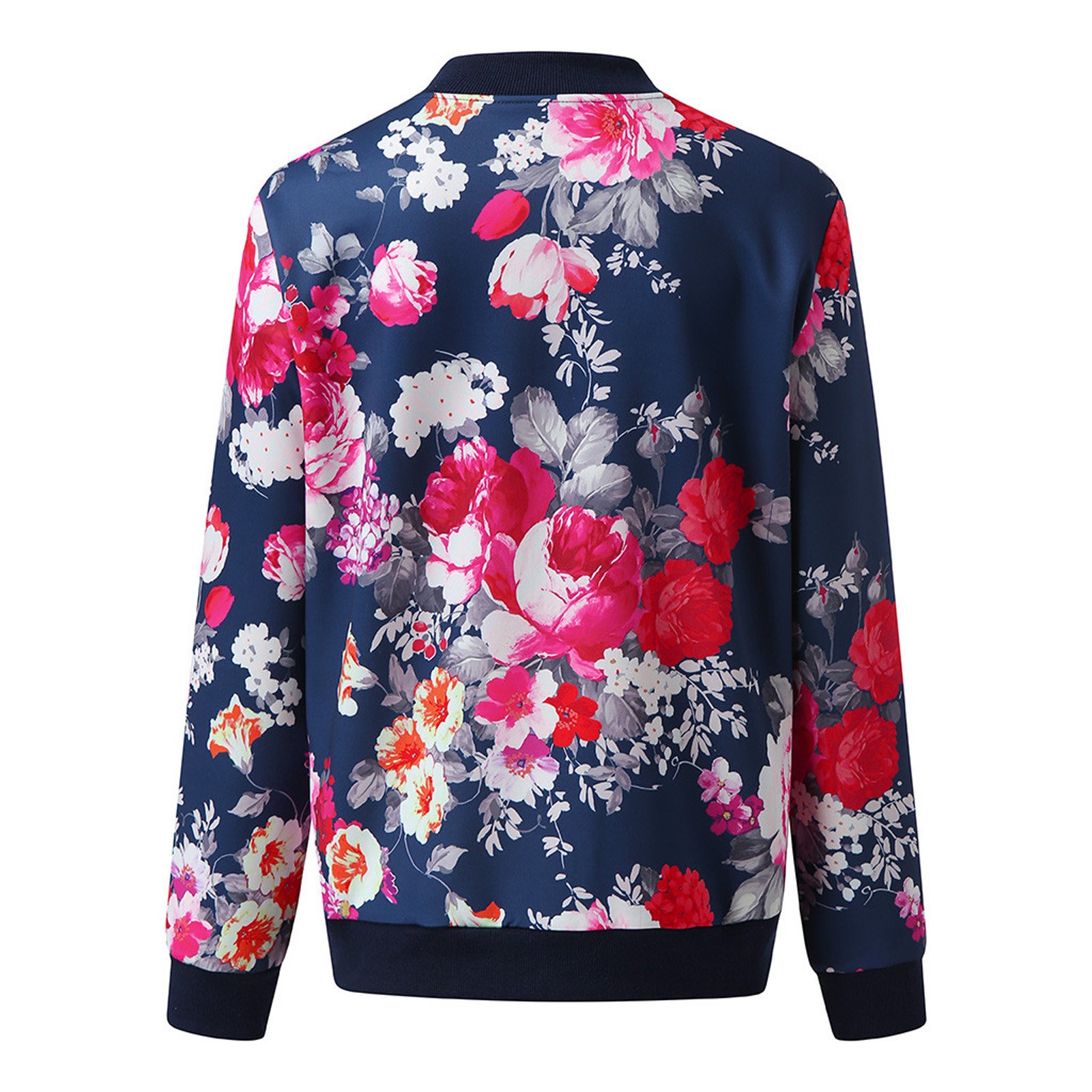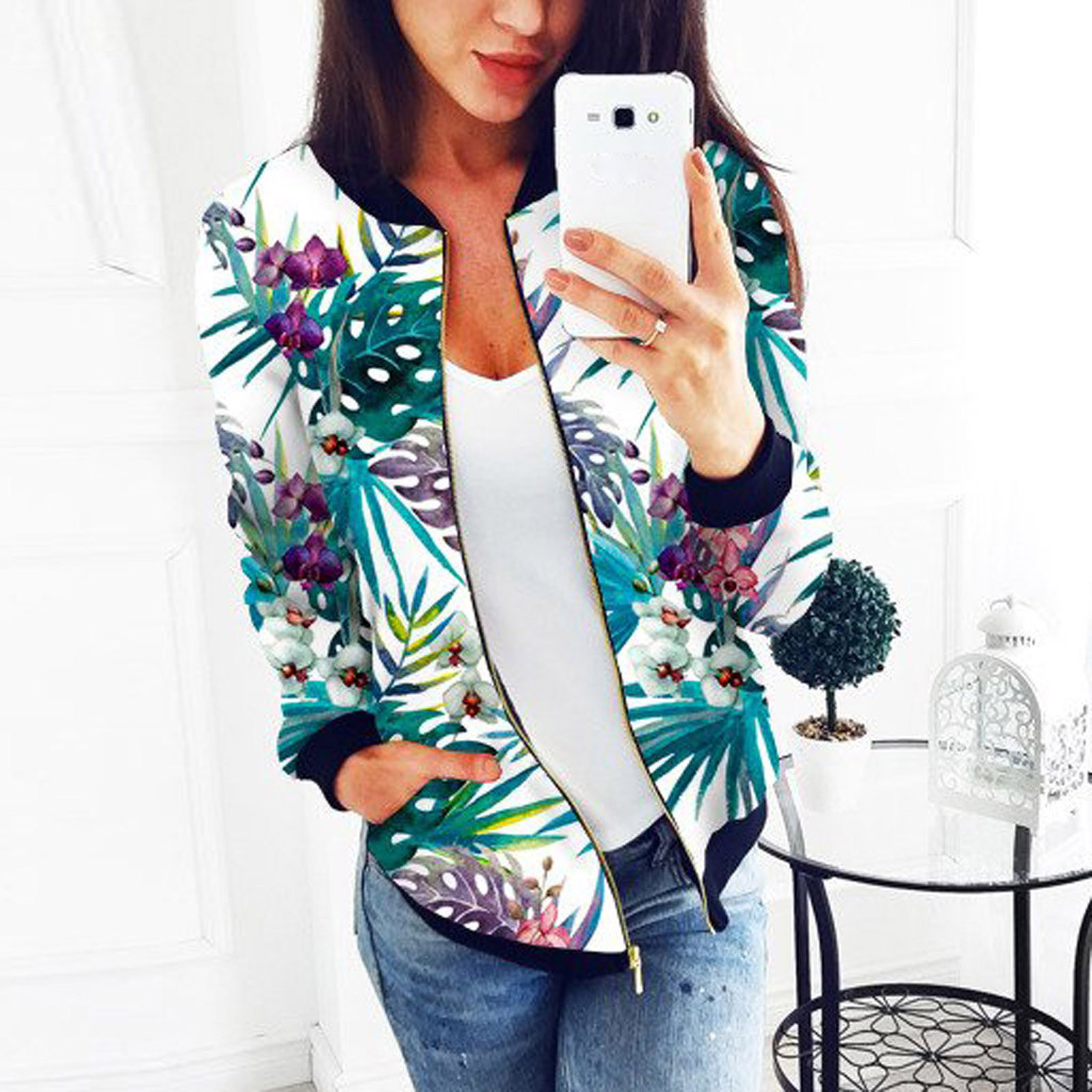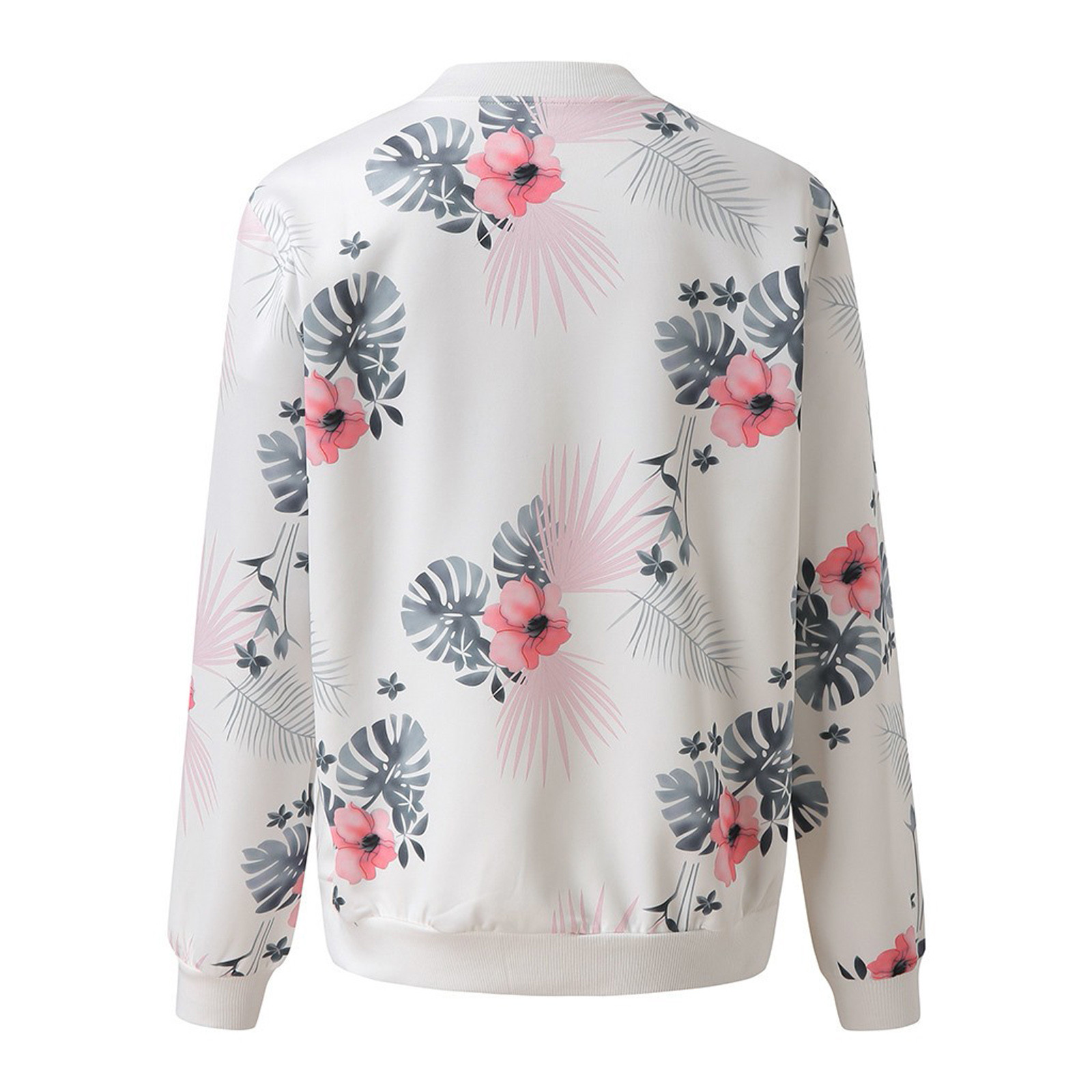 Womens Retro Floral Printing Zipper Up Jacket Casual Tops Coat Outwear