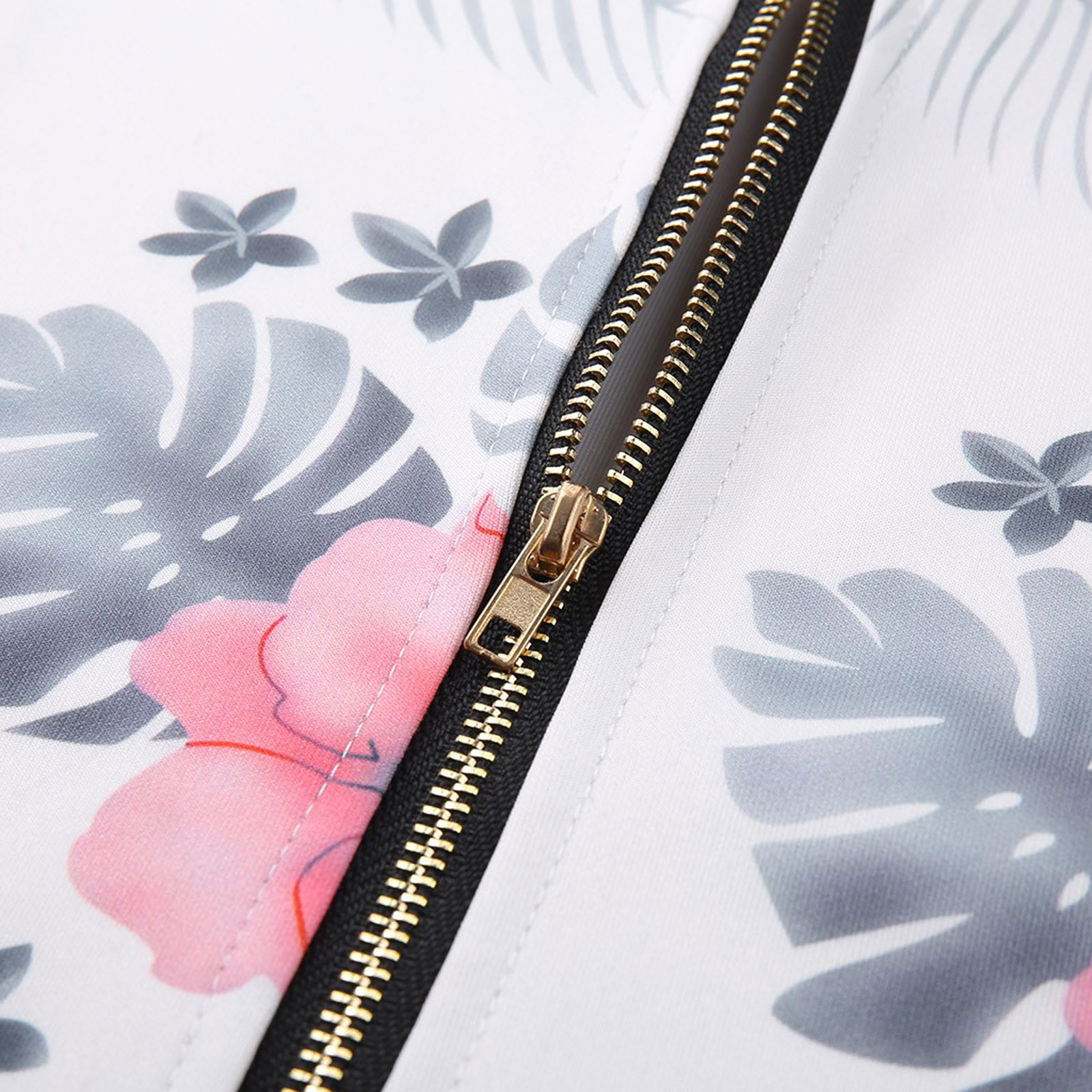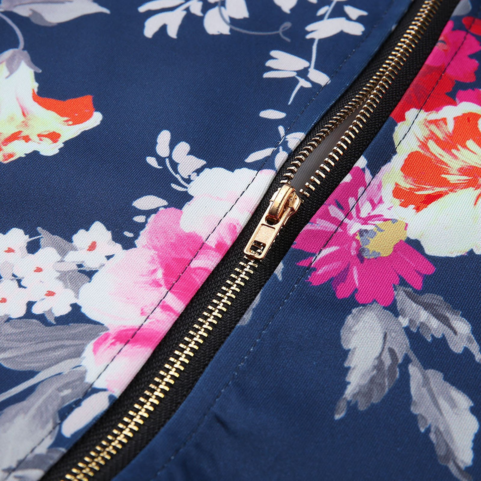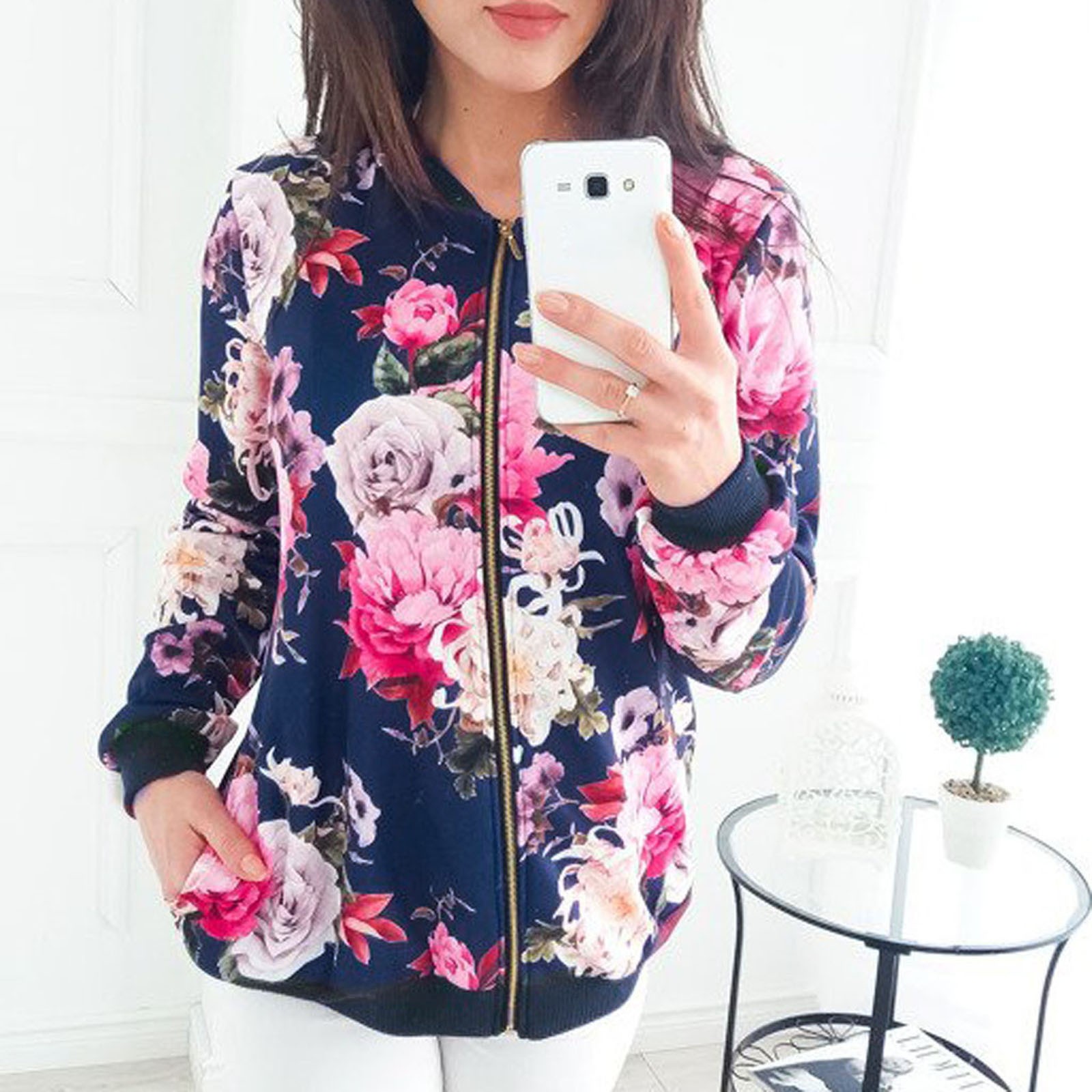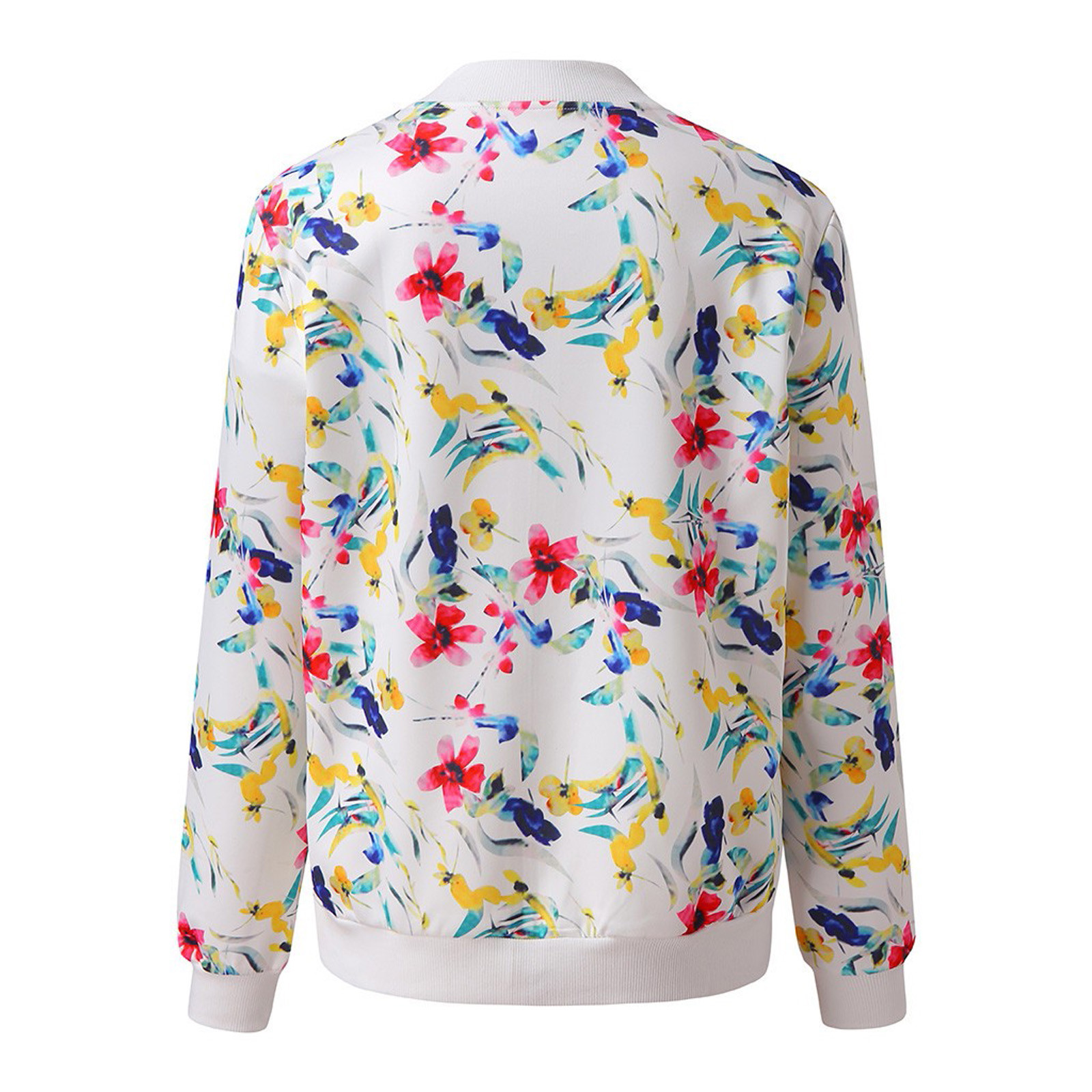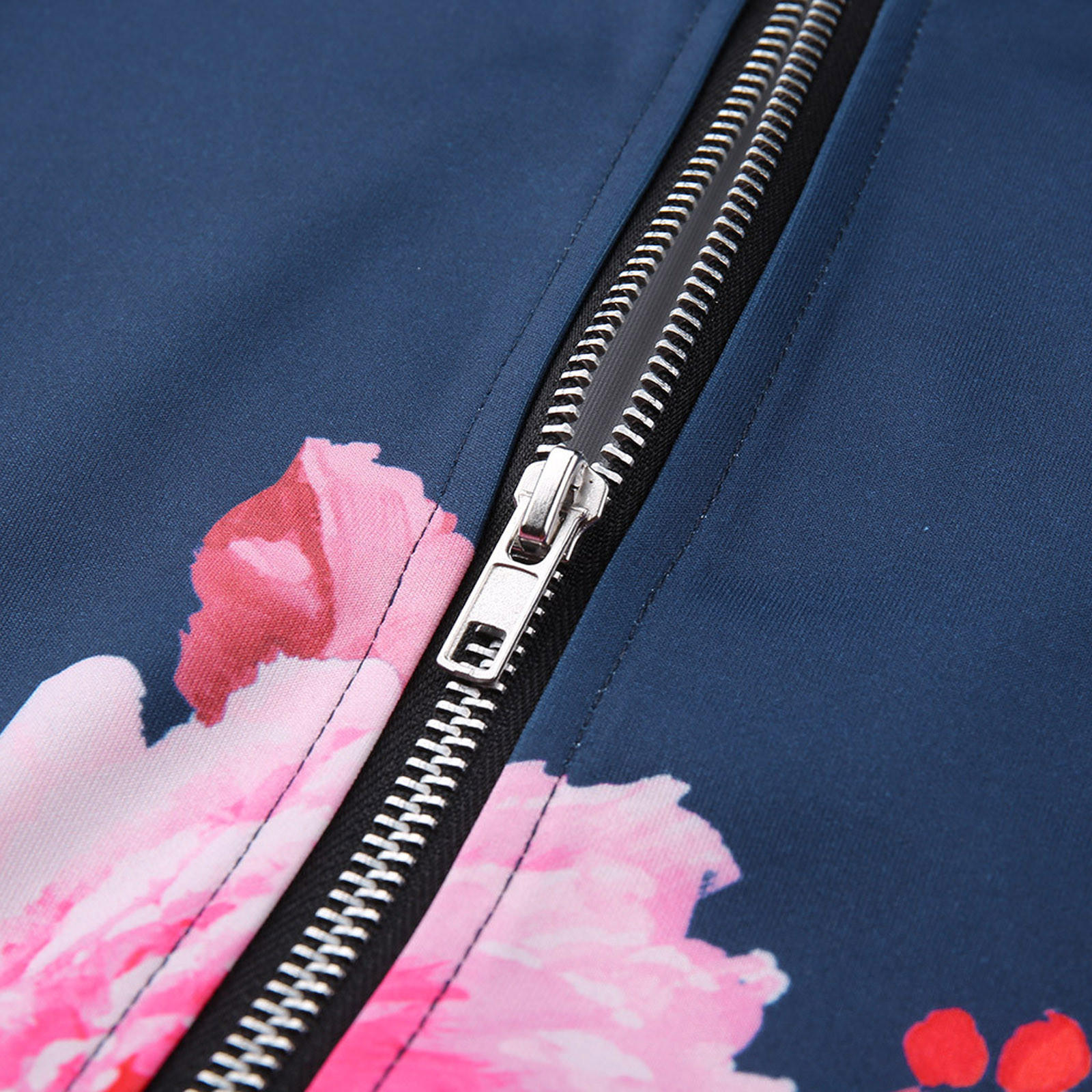 Womens Retro Floral Printing Zipper Up Jacket Casual Tops Coat Outwear