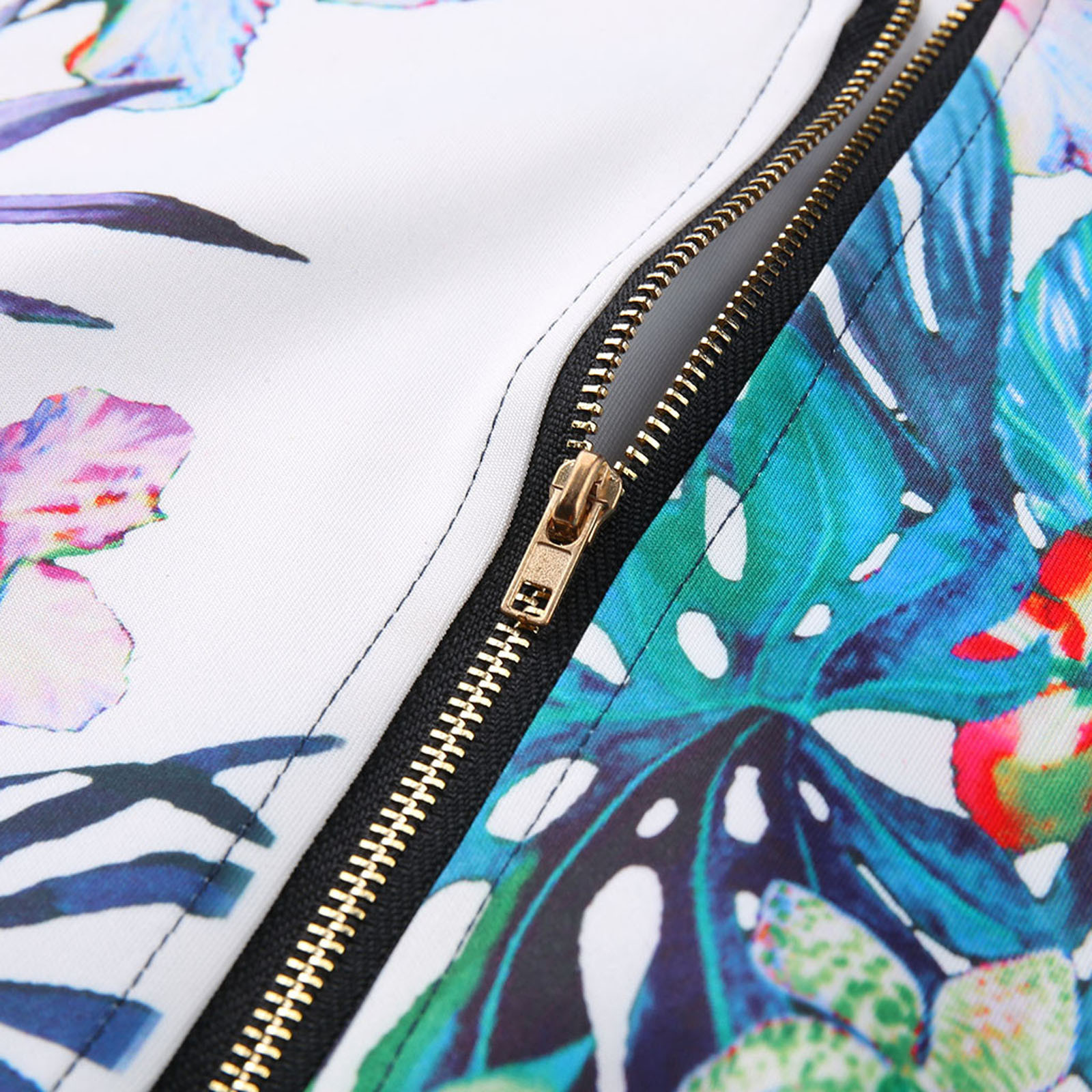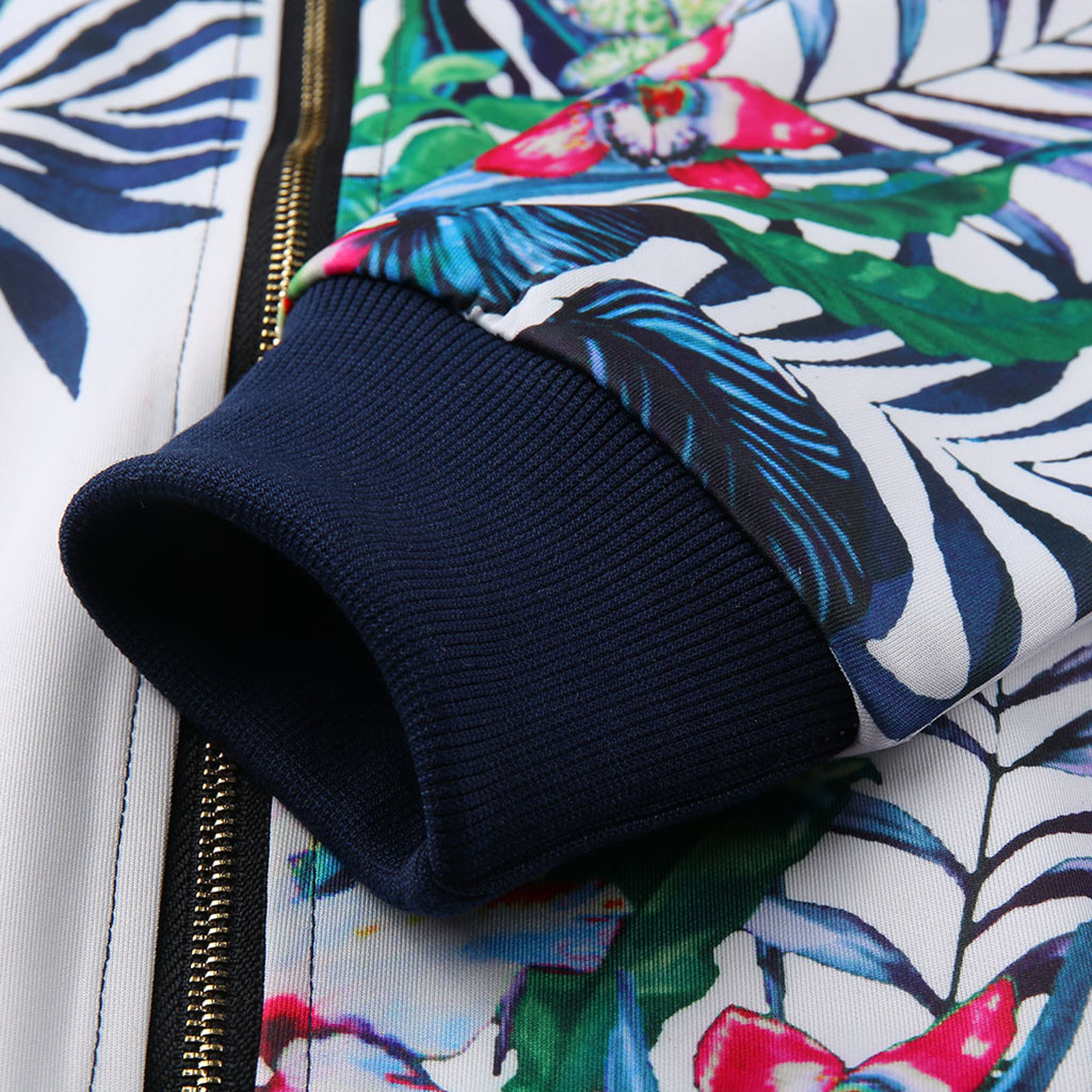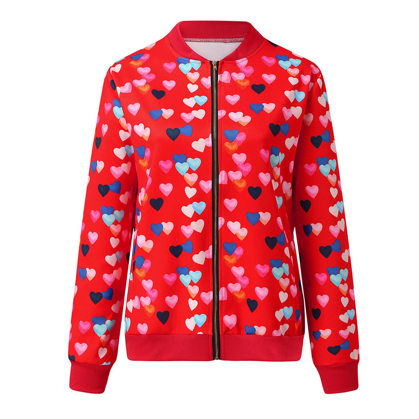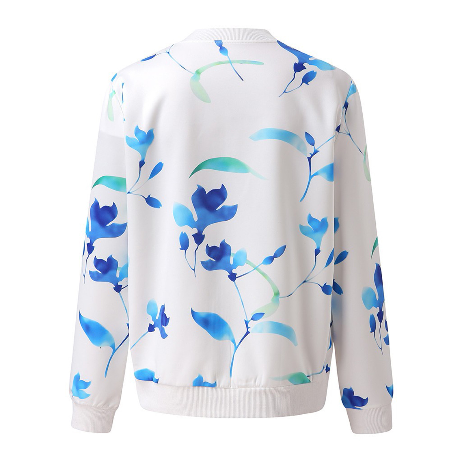 Womens Retro Floral Printing Zipper Up Jacket Casual Tops Coat Outwear