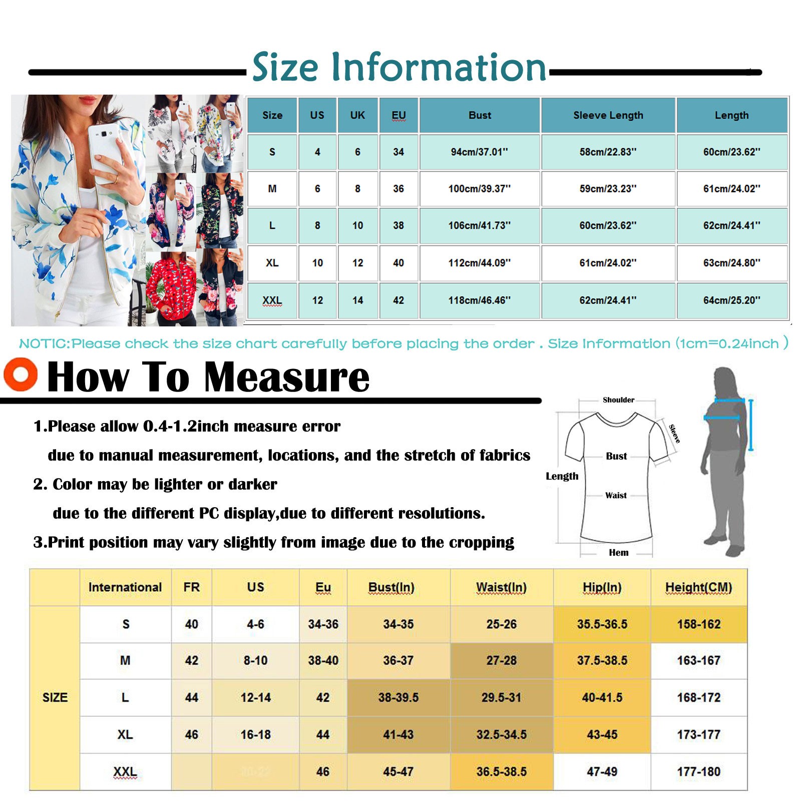 | Size | US | UK | EU | Bust | Sleeve Length | Length |